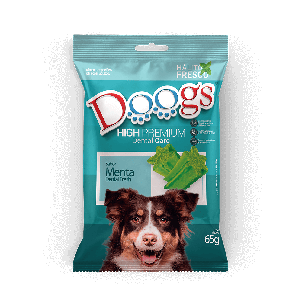 O Doogs Premium Dental Care Menta é um petisco funcional que auxilia na higiene bucal do seu cão enquanto ele se diverte! Sua textura especial ajuda a reduzir placa e tártaro, promovendo dentes mais limpos e hálito refrescante com o sabor agradável de menta.