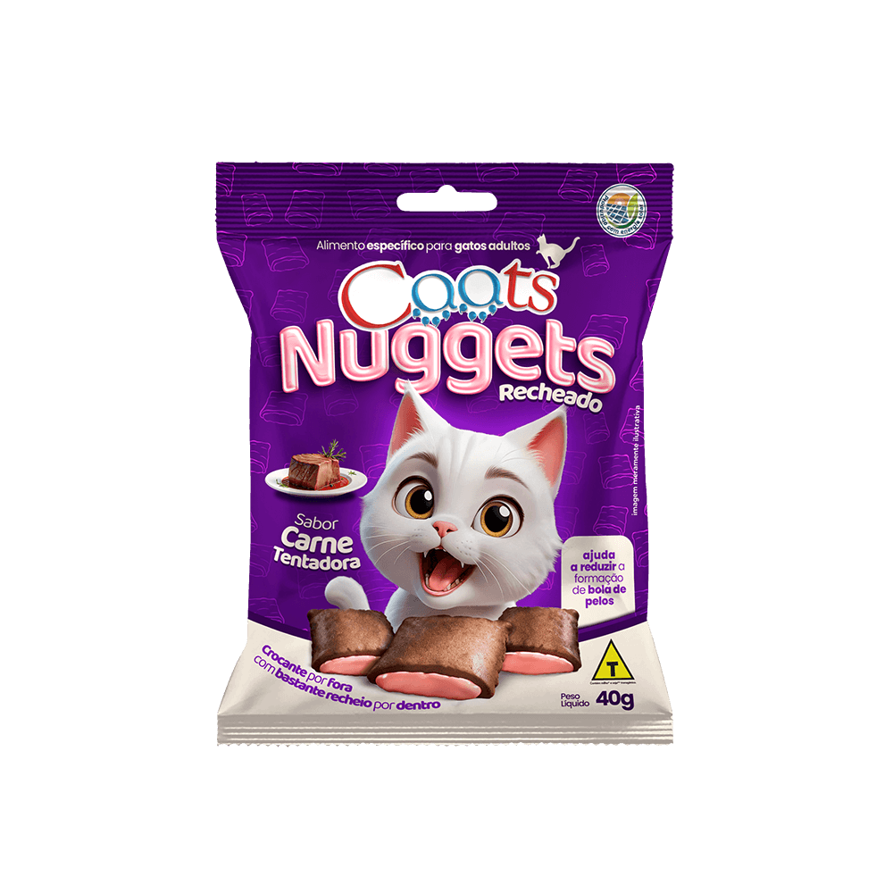 Proporcione momentos de prazer e bem-estar ao seu gato com os Nuggets Caats Sabor Carne. Um petisco delicioso e nutritivo, com textura crocante por fora e macia por dentro, feito para agradar até os felinos mais exigentes.